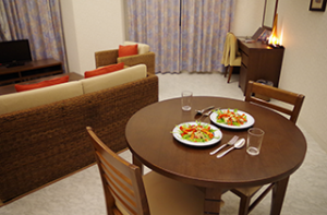 宿泊プラン デラックス・ツインルーム バルコニー付きの快適な広さの室内スペース。ファミリー、ご友人での滞在にオススメです。 価格 100,000円/泊 ベッド シングルベッド:シングルダブルベッド:ダブル チェックイン 14:00~20:00 朝食 あり
